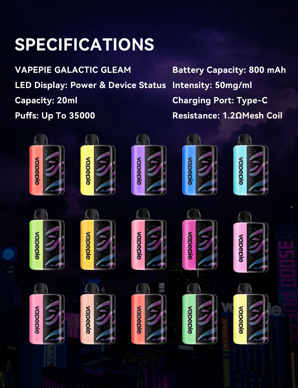 🌌 VAPEPIE Galactic Gleam 35,000 PUFFS — Clear Structure. Bold Presence.
